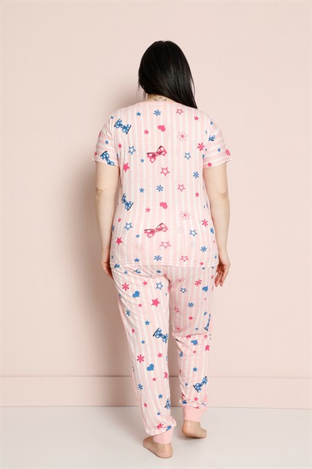 طقم بيجامة وردي مخطط مقاس كبير نسائي